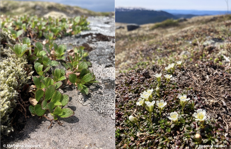 À gauche : la busserole alpine, à droite : la diapensie de laponie © Marianne Valcourt (RMBMU)